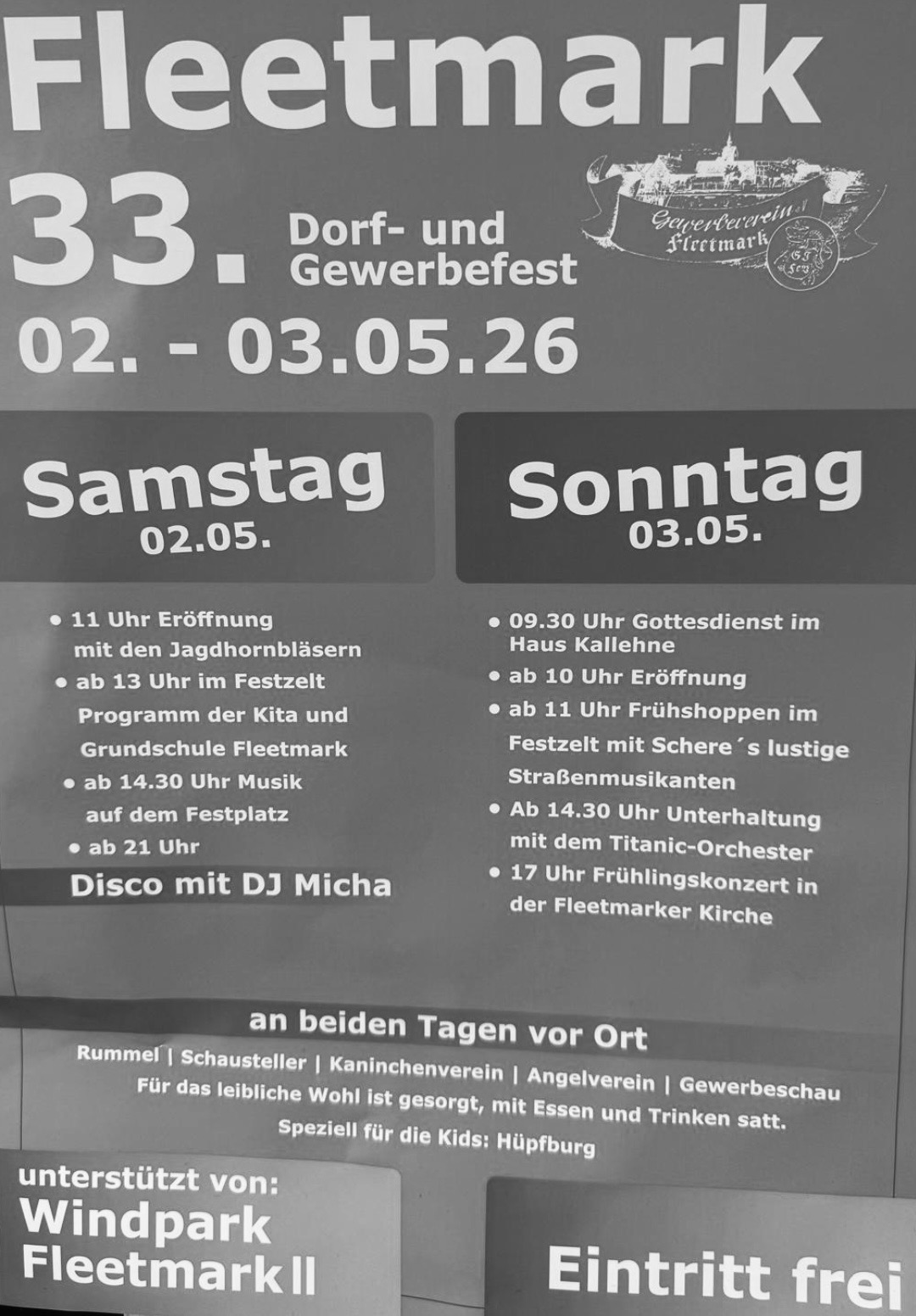 Fleetmark heißt Sie auch dieses Jahr wieder herzlich willkommen auf dem Dorf- & Gewerbefest!