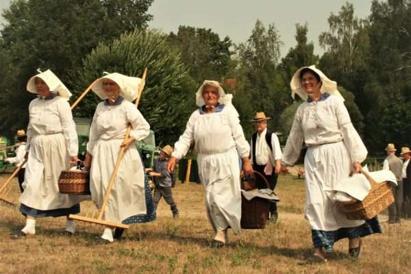 Anstrengend und arbeitsreich war einst die Zeit der sommerlichen „Aust“, der Roggenernte. Beim anschließenden „Vergodendeel“ wurde besonders ausgelassen gefeiert. Die Heimatinteressierten aus Dähre zeigen beides, die mühsame Ernte mit Sense und früherer Erntetechnik, aber auch den fröhlichen Tanz um die letzte Garbe. Auch im übrigen Museumsdorf wird die Vergangenheit lebendig: beim Flachsspinnen, in Böttcherwerkstatt und Schmiede, in der Bockwindmühle und Dorfschule. Auch unsere Mitmachaktionen für Kinder bieten Einblicke in das Landleben früherer Generationen.