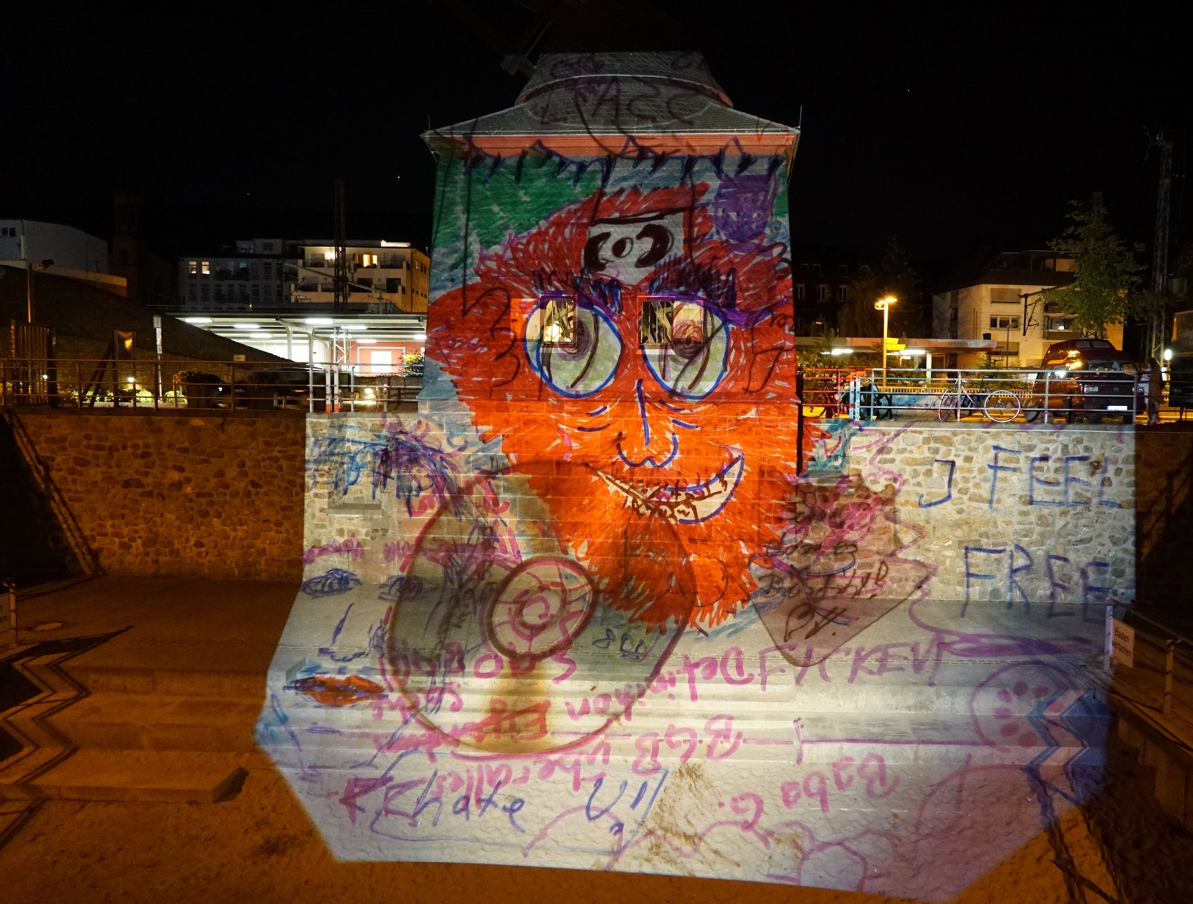 Die Lichtzeichnerin Nikola Dicke und der Aktionskünstler Brandstifter werden durch nächtliche Projektionen dieser gefundenen Zettel den Innenraum der St. Johannis Kirche erhellen. Das Publikum ist eingeladen auf die gefundenen Zettel zu reagieren und mit der Wiedergabe spontaner Eindrücke und Emotionen auf Overheadfolien und präparierten Glasplatten unmittelbar sichtbare Echos der Gegenwart zu schaffen.”